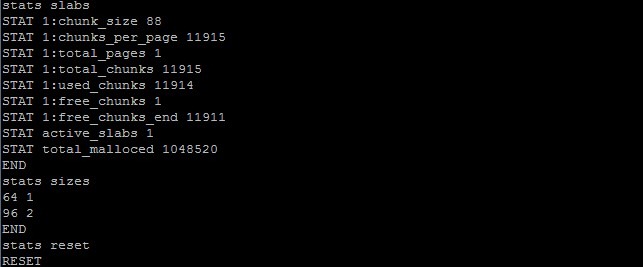 如stats slabs,stats sizes,stats reset等等使用也比较常见。