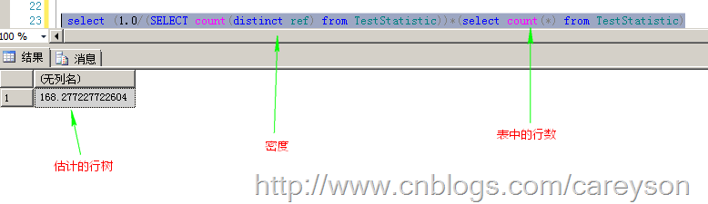 对于那些不能根据采样步长做出选择的查询,查询分析器使用密度来估计行数,这个公式为:估计的行数=表中的行数*密度