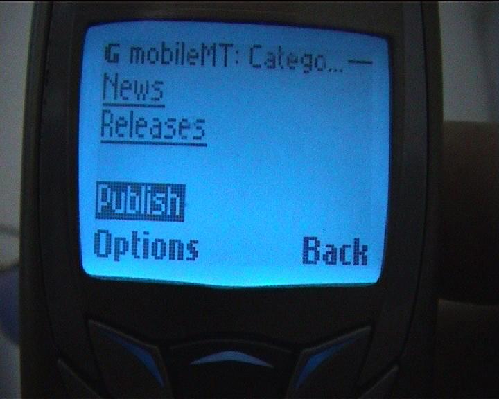 mobileMT是MovableType博客系统的WAP版本,它利用XML-RPC协议来提交数据到MovableType,采用WAP 1.1标准开发。屏幕截图如下所示: